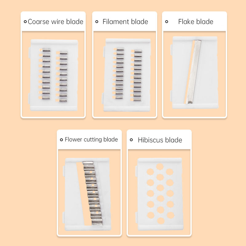 • Cutter body + 5 Knives + Hand-guard + Small peeler